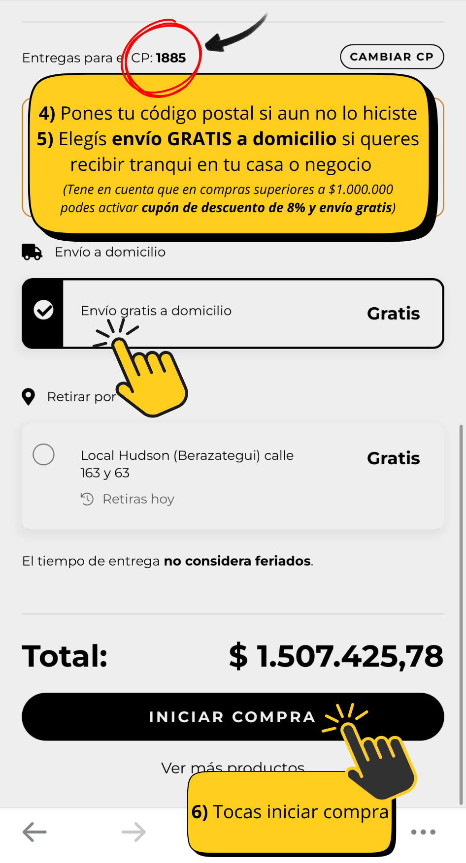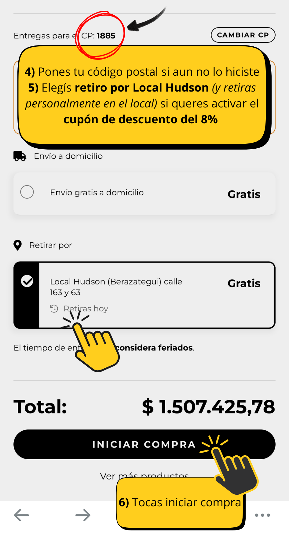 A. Si retirás en el Local (8% OFF): Comprá por la web, seleccioná "Retiro en Local" y usá el código: RETIROENLOCAL antes de finalizar tu compora.