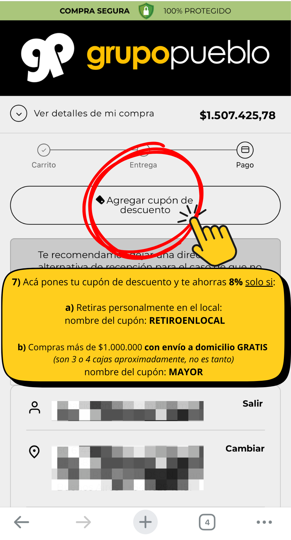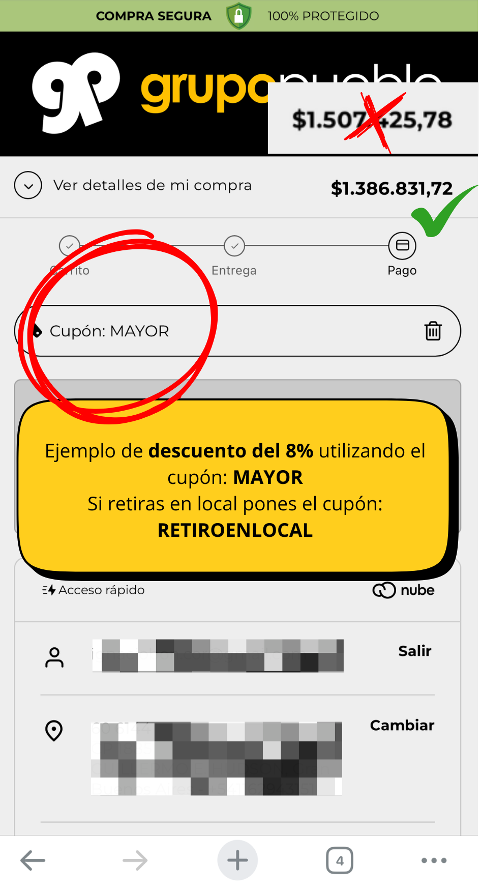 B. Si tu compra supera el $1.000.000 (8% OFF + Envío Gratis): Usá el código: MAYOR. Te bonificamos el envío y te hacemos el descuento.